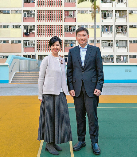 【明報專訊】新加坡同香港官民交往頻密,新加坡國家發展部長徐芳達近日訪港,到過簡約公屋、彩虹邨同「大館」參觀,仲孖住房屋局長何永賢喺彩虹邨嘅經典打卡位籃球場影相。徐部長話,今次交流顯示星港兩地密切聯繫,同互相學習嘅價值。