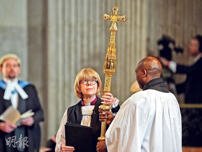 【明報專訊】現年63歲的馬拉利(Sarah Mullally,圖中)周四(28日)在倫敦聖保羅大教堂通過法律確認程序,正式就任第106任坎特伯雷大主教,成為1400年來擔任該職的首名女性,亦是英國聖公會創立近500年來首名女性領袖。當教會人員現場宣讀公告稱該任命無公眾反對時,現場有一名神職人員裝扮的男子人站出來大叫反對確認,但官方指反對意見提出方式不符合流程且超出管轄權,最終任命完成。馬拉利在儀式後向英國廣播公司(BBC)表示將公開反對厭女現象。