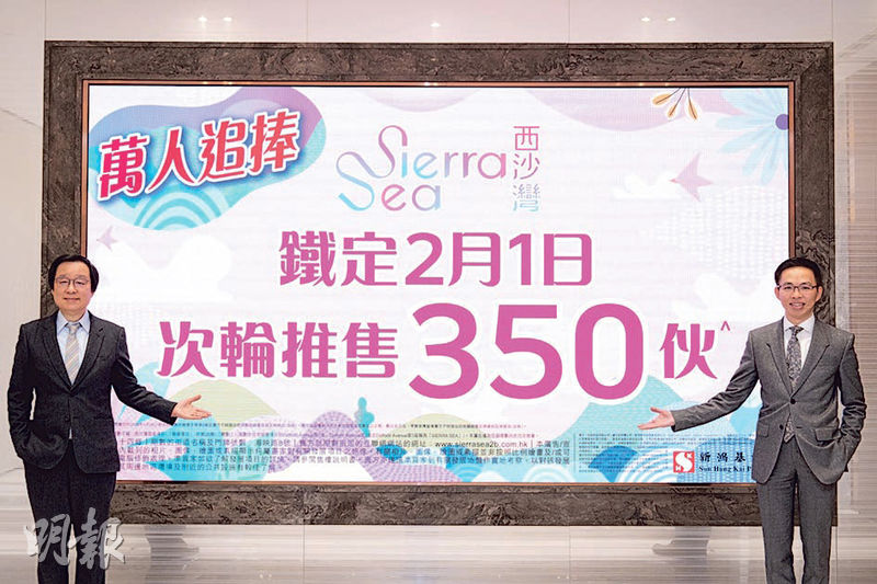 SIERRA SEA 2A、2B期本月開售至今,估計已累沽逾880伙,新地副董事總經理雷霆表示,由於市場有大批向隅客,集團決定周日進行次輪價單發售350伙,折實均呎12,469元,屬原價水平。雷續稱,今年拆息有機會繼續下調,相信新春後樓市會更熱鬧。