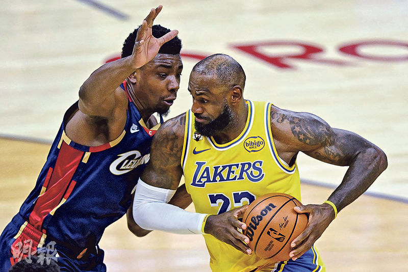 【明報專訊】NBA常規賽昨演多場賽事,焦點戰洛杉磯湖人作客以99:129慘敗克里夫蘭騎士。此役被視為可能是湖人球星「大帝」勒邦占士生涯最後一次重返成名地倒戈,賽前獲主隊溫情致敬,特別製作影片回顧占士兩度效力。畫面令占士情緒激動,低頭以球衣拭淚,全場球迷起立鼓掌。