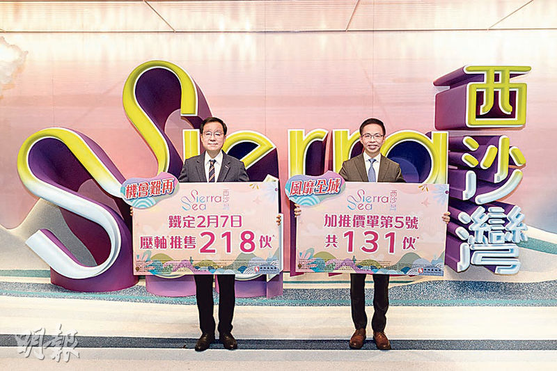 【明報專訊】被新地(0016)形容為「銷情清風送爽,極速沽清」的西貢西沙SIERRA SEA 2B期,周日(2月1日)次輪價單推出的350伙清袋後,發展商即加推第5號價單涉131伙應市,連同之前未發售餘貨,安排本周六(2月7日)第三輪價單發售218伙,整批折實均呎12,830元。