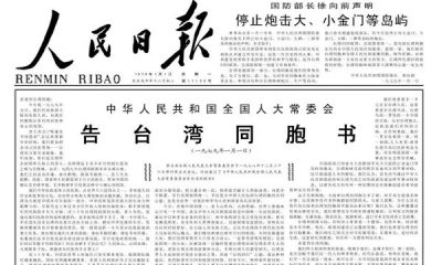 今天(1月1日),是《告台灣同胞書》發表47周年。1...