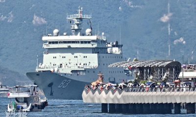 【明報專訊】解放軍戚繼光艦(舷號83)、沂蒙山艦(舷...