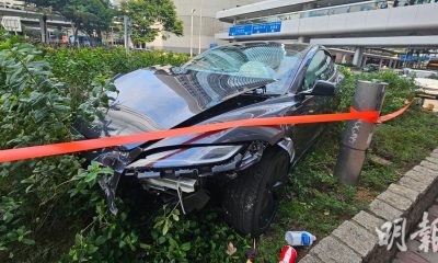 今午(17日)2時許,一輛Tesla私家車沿中環干諾...