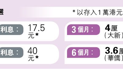 【明報專訊】港元定存1個月年息接近5厘,屬近月少見,...