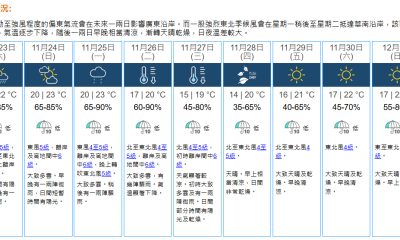 今年下半年首場寒潮自11月22日出現,23日(今天)...