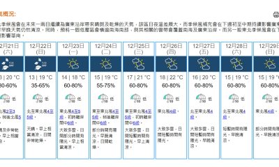 【19:00】受東北季候風影響,廣東地區晴朗及非常乾...