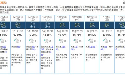 【21:15】本港地區今晚(24日)及明日聖誕節(2...