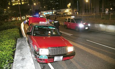 【明報專訊】一輛空載的士昨晨5時許沿中環干諾道中西行...