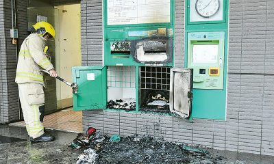 【明報專訊】秀茂坪郵政局門外郵箱昨早起火,一批待寄信...
