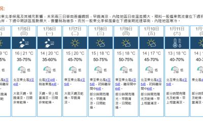 【19:45】乾燥的東北季候風正為華南帶來普遍晴朗的...