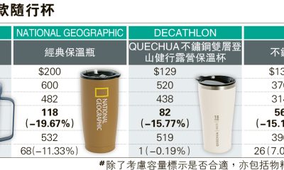 【明報專訊】近年不少人會用方便攜帶的隨行杯,消委會測...