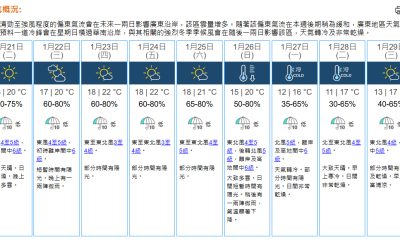 本港地區今晚(20日)及明日(21日)天氣預測:大致...