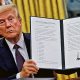 【明報專訊】美國總統特朗普周一(20日)就職後簽署行...