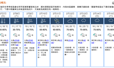 天文台表示,一股強烈冬季季候風會在明早(7日)逐漸影...