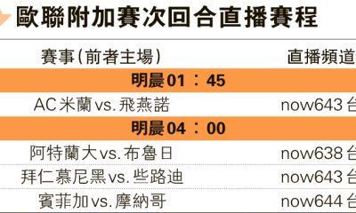 【明報專訊】歐聯淘汰圈附加賽次回合明晨舉行4場比賽,...