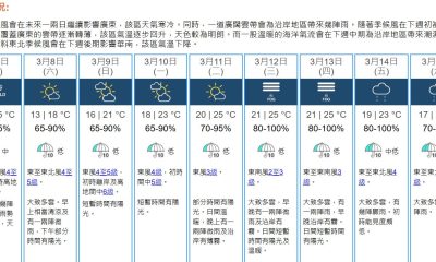 天文台表示,東北季候風正影響華南沿岸,而一道廣闊雲帶...
