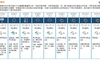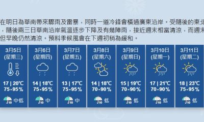 天文台發出特別天氣提示,稱位於華中的冷鋒正逐漸向南移...