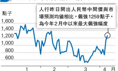 【明報專訊】美國發動關稅戰,影響所及人民幣走勢偏弱,...