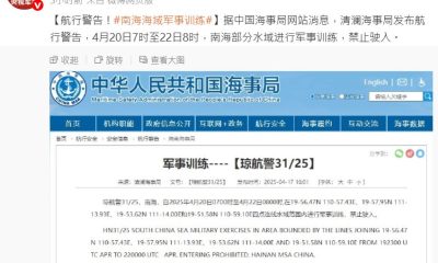 據中國海事局網站消息,清瀾海事局發布航行警告,周日(...
