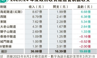【明報專訊】運輸署正檢討隧道費,預計今年內完成並諮詢...