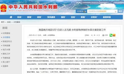 中國水利部5月31日通報,6月1日起,中國全面進入汛...