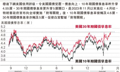 【明報專訊】評級機構穆迪下調美國主權信用評級,美匯、...