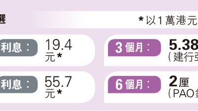 【明報專訊】12個月定存已跌至2厘,短期內有機會跌穿...