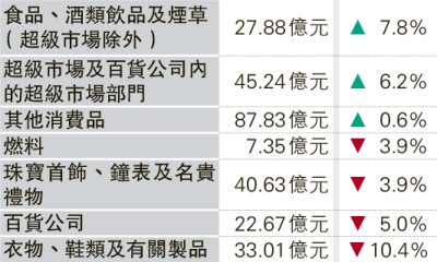 【明報專訊】政府統計處公布,香港今年3月零售業總銷貨...