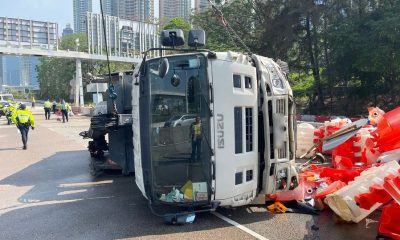今晨(5月2日)7時許,一輛吊臂貨車沿西九龍公路往西...
