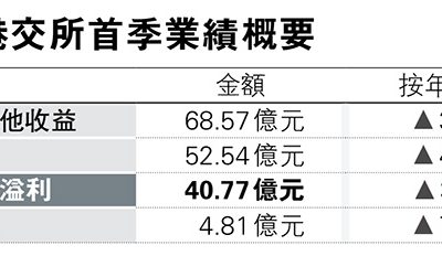 【明報專訊】港交所(0388)公布截至今年3月底止首...