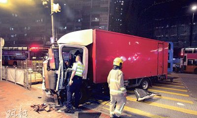 【明報專訊】北角發生驚險車禍。一輛貨車昨晚在北角長康...