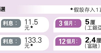 【明報專訊】港元定存高息精選1個月高見16厘,為PA...
