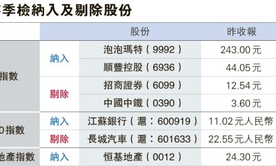 【明報專訊】富時羅素日前公布季度指數檢討結果,富時中...