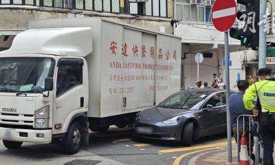 上午11時許,一輛Tesla私家車與一輛貨車在深水埗...