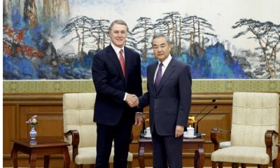 中國外交部長王毅6月3日在北京會見美國新任駐華大使龐...