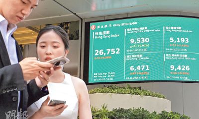 【明報專訊】內地股市黃金周假期結束啟市,A股三大指數...