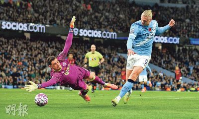 【明報專訊】英超豪門曼城昨晨藉鋒將艾寧夏蘭特上半場梅...