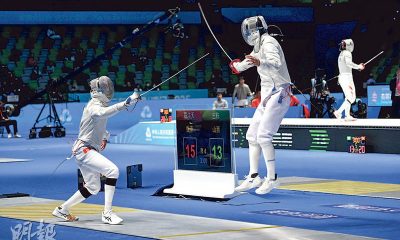 【明報專訊】全運會劍擊項目昨在啟德體藝館同時上演男子...