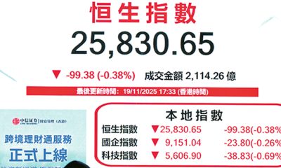 【明報專訊】美股道指、標指隔晚收市跌逾1%,亞太區股...