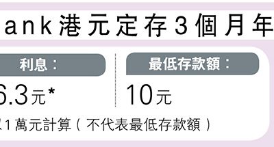 【明報專訊】建行亞洲定存優惠推廣期至今年12月31日...