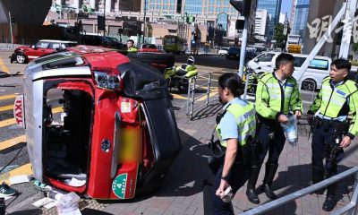 上午10時許,一輛的士駛經觀塘偉業街與偉發道交界,與...