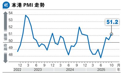 【明報專訊】標普全球公布,10月香港採購經理指數(P...