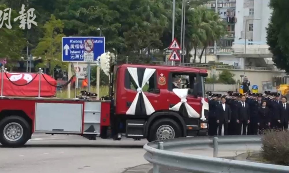 大埔宏福苑大火殉職消防員何偉豪今早(19日)出殯。載...