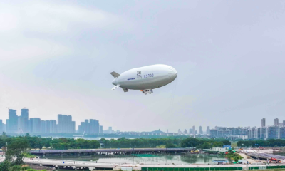 「祥雲」AS700載人飛艇近日飛抵浙江省紹興市越城區...