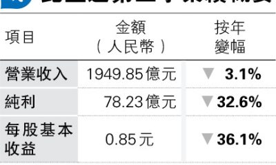 【明報專訊】受iPhone在中國銷售疲軟拖累,加上在...