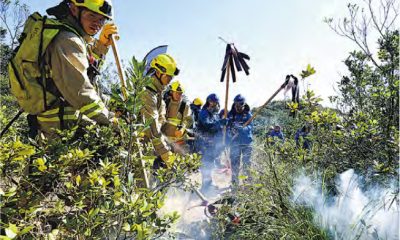 【明報專訊】近日天氣乾燥,易生山火。消防處聯同警方、...