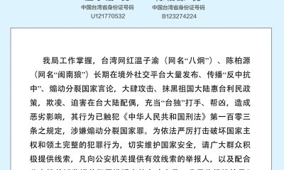 福建省泉州市公安局今日(13日)發布懸賞通告,徵集台...