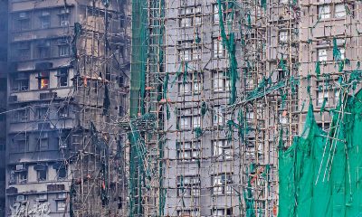 【明報專訊】大埔宏福苑五級火,消防處發現外牆有棚網、...