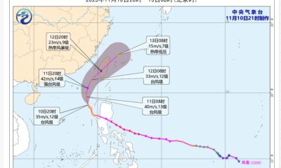 中央氣象台報告,強烈熱帶風暴「風神」10月21日零時...